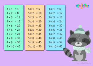 Los padres y profesores pueden descargar nuestras tablas para imprimir, de esta forma, los niños y niñas pueden memorizar cada una de ellas a su ritmo, paso a paso y de una forma divertida, con juegos. Estos recursos educativos de matemáticas son adecuados tanto para clase como para casa. En esta página encontrarás diferentes recursos de las tablas de multiplicar gratis.