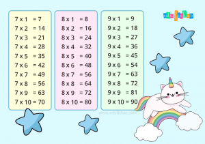 En nuestra web puedes encontrar a continuación diferentes hojas para imprimir con todas las tablas de multiplicar. Estas tablas están diseñadas especialmente para que los estudiantes puedan memorizarlas de una forma intuitiva y fácil. Los diferentes diseños y dibujos que acompañan a estas tablas pretenden captar la atención de los niños y hacer más sencilla la tarea de memorizar y aprenderse cada una de estas tablas de multiplicar.