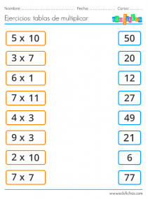 Ejercicios con las tablas de multiplicar